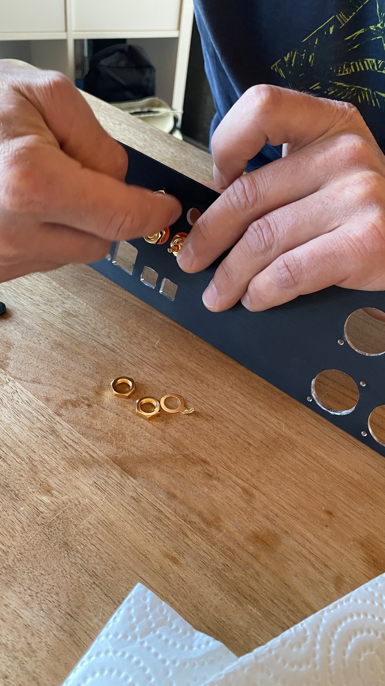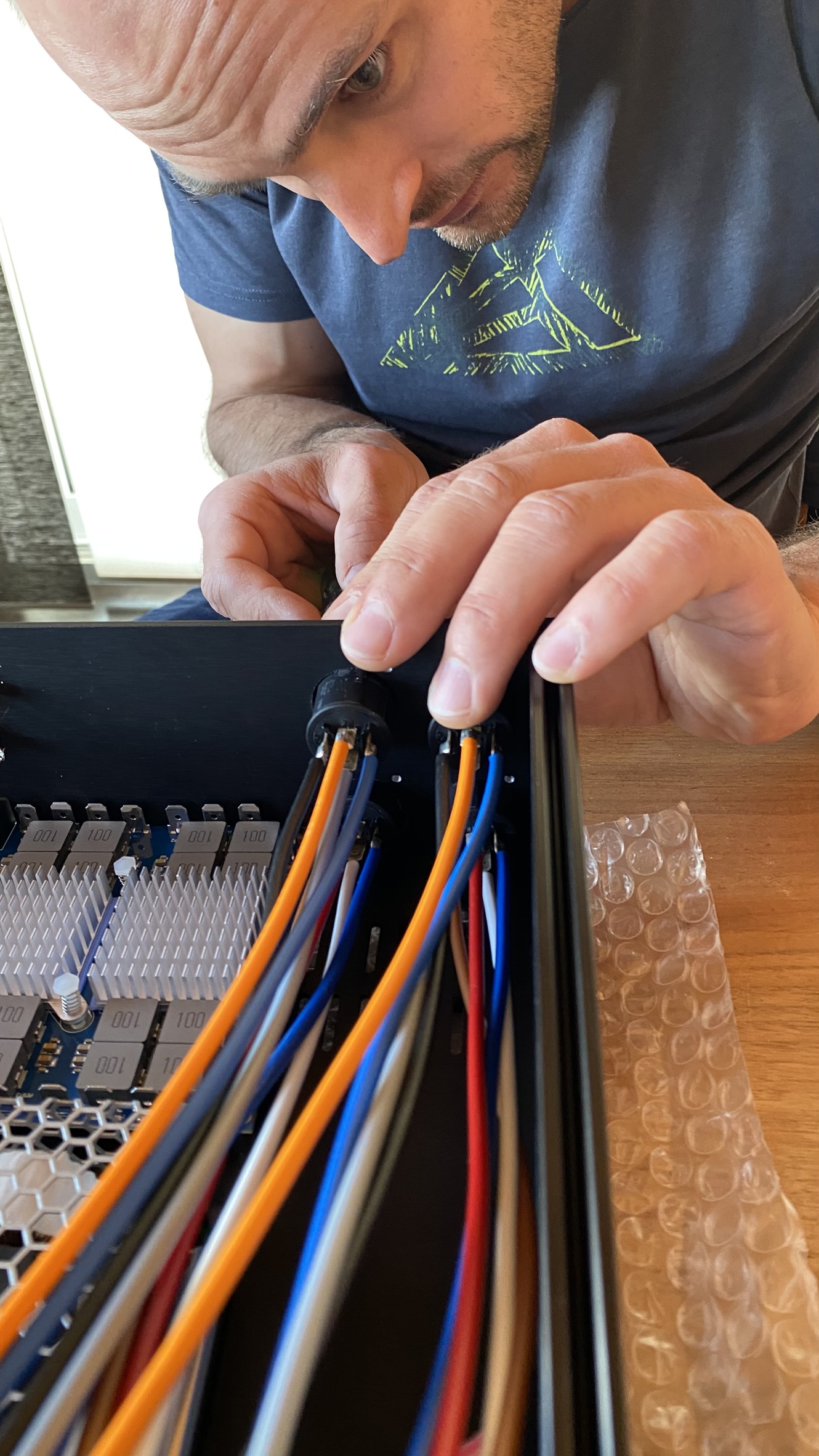 Nur im Angesicht des Lötens mit dem Lötkolben wurde es bei mir etwas, sagen wir, mulmig in der Magengegend. Glücklicherweise hat Vollprofi Andreas übernommen. Da habe ich definitiv noch Trainingsbedarf. In der Werkstatt wurde mir auch schnell klar, warum er das so souverän kann: Die Kabel von den Amps zu den SpeakON-Terminals sind bereits steckfertig gelötet. Heisst im Klartext: Andreas lötet. Viel. Sehr viel. Vielen Dank dafür!
